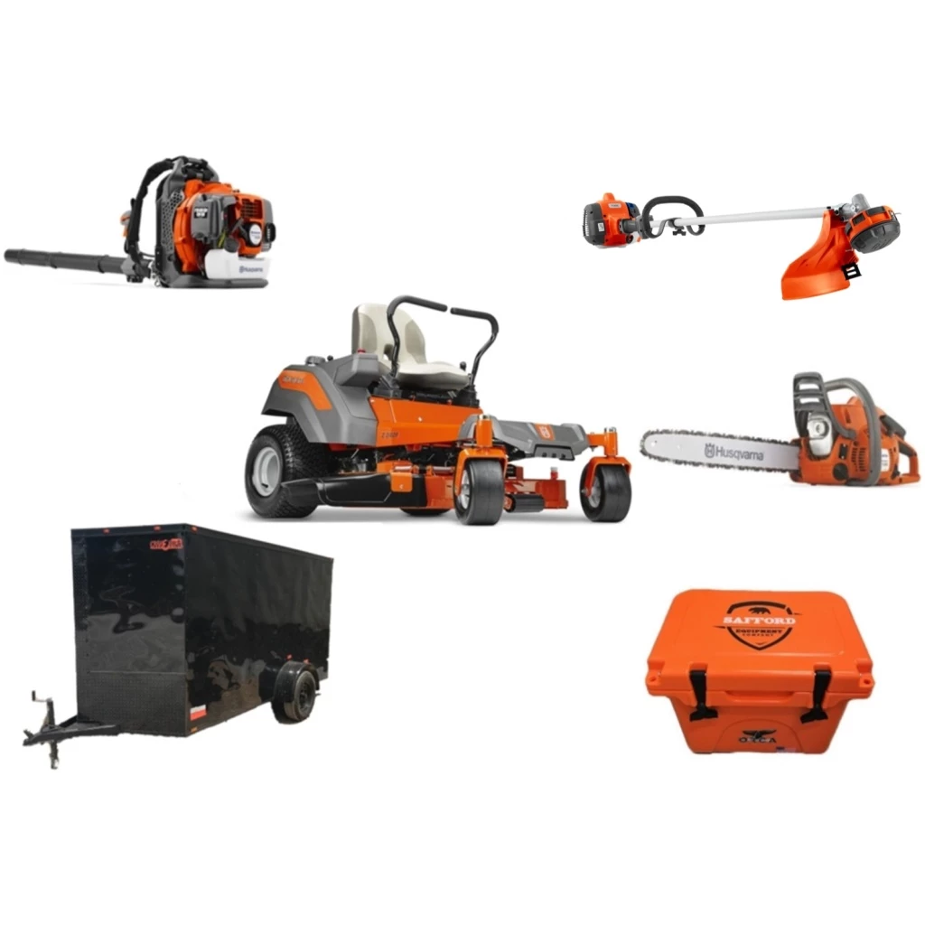 The HH4226 Husqvarna Mower Bundle will help you handle all the jobs around the house with the Husqvarna Z242 Zero Turn Mower and a blower, trimmer, and chainsaw by Husqvarna as well as a Cynergy Blackout trailer.